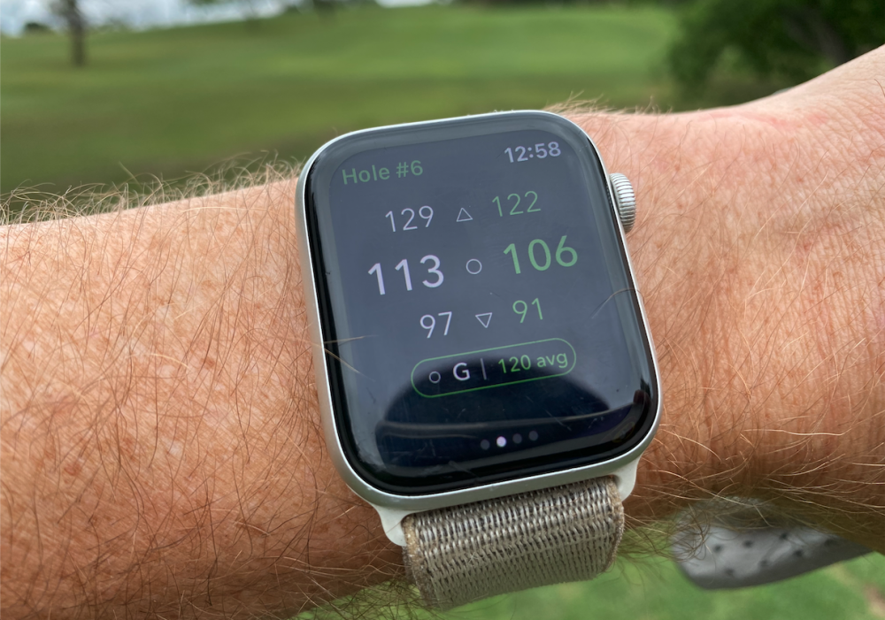 For these tests I'm still using the Series 4 Apple Watch (44mm). Apple has advanced two generations up to the Series 6 (from $399) and more affordable SE version (from $279). One of my greatest complaints about the device itself - the constant battery drain - appears to still be an issue. Apple says the Series 6 can run 18 hours during normal use. I found during several of my rounds my Series 4 didn't last all 18 holes. Some apps seemed to drain the battery more than others. Other times, I ran into software update issues: I couldn't use the watch app if I didn't update my watch, which also required updating my phone, which also required plugging into power, and being on WiFi. Not good for a guy who typically rolls into the course parking lot as his group is being announced to the tee.